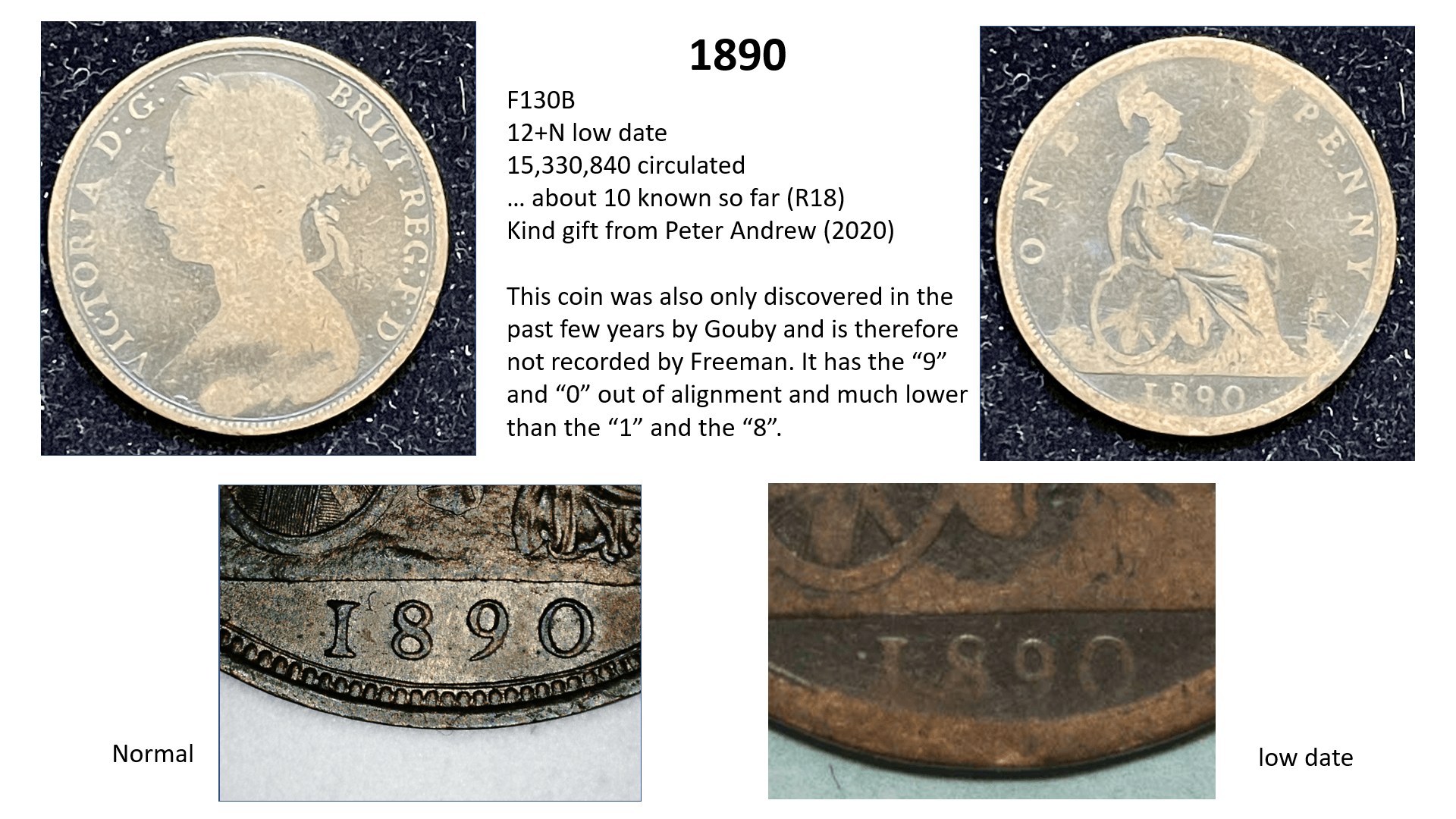 Included with each year is the cataloguing according to Freeman (for example the first coin from 1860 = F1 and the final coin from 1967 = F257). Where you find a gap in my collection, it is usually due to his catalogue also including “proof coins” such as F2 which is actually a gold penny proof and not part of any circulation collection.