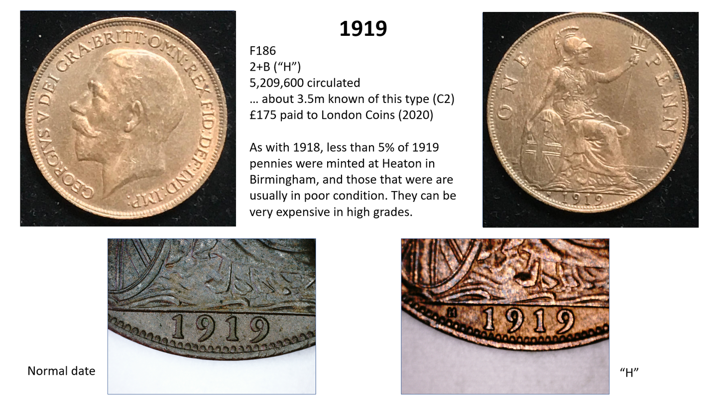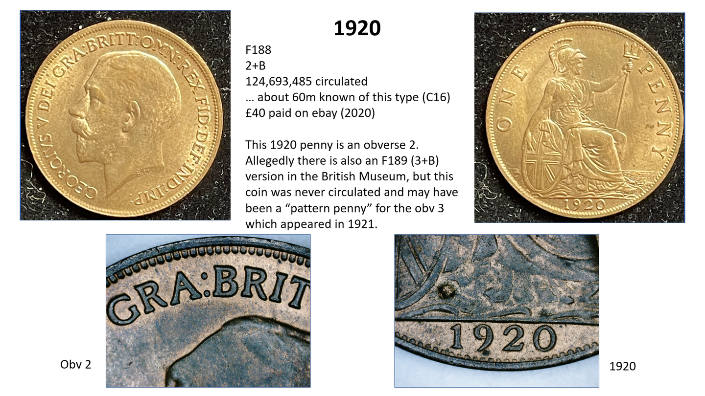(Note - I am also missing F189 (1920 3+B), also rated R20 - but here the only known specimen was made for monarchy and is now kept at the British Museum. It may have been a “pattern”, or design, penny rather than a circulation penny and will never become available anyway.)
